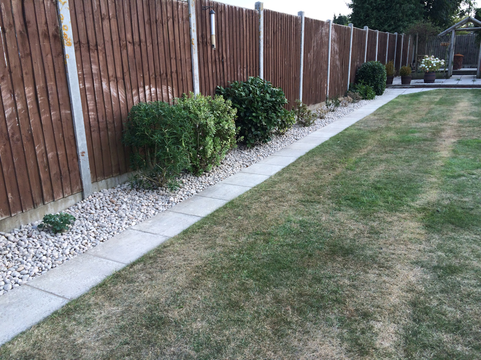 We tidied up an overgrown garden and we also re-established the rear flower bed by digging in compost and manure. An edge was added to retain the extra soil and re-cycled bricks, from the customer, were used to keep the costs down.