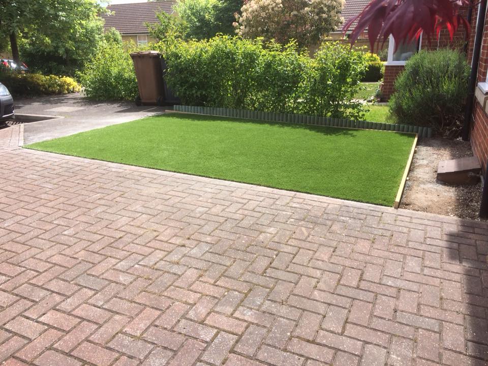 A decorative front lawn had become a bit neglected, therefore a quick solution was a small artificial lawn.