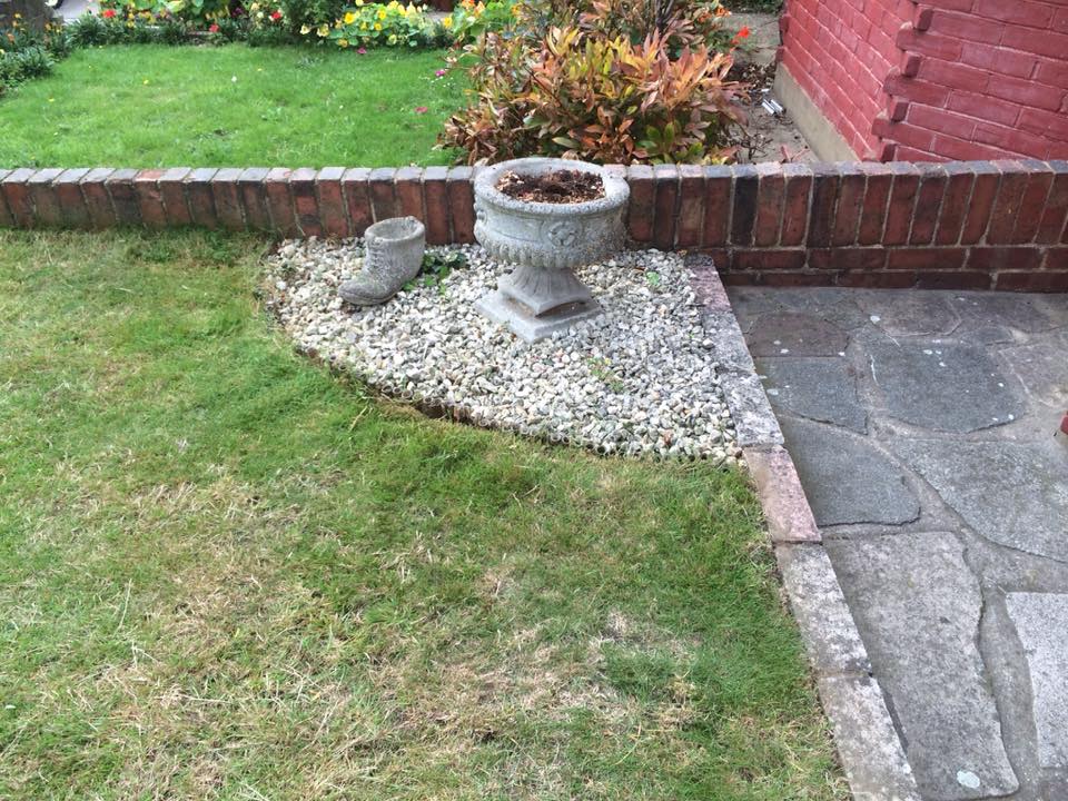 Re-turfing the back of the lawn which was prone to flooding. This was dealt with by adding drainage material to help prevent this