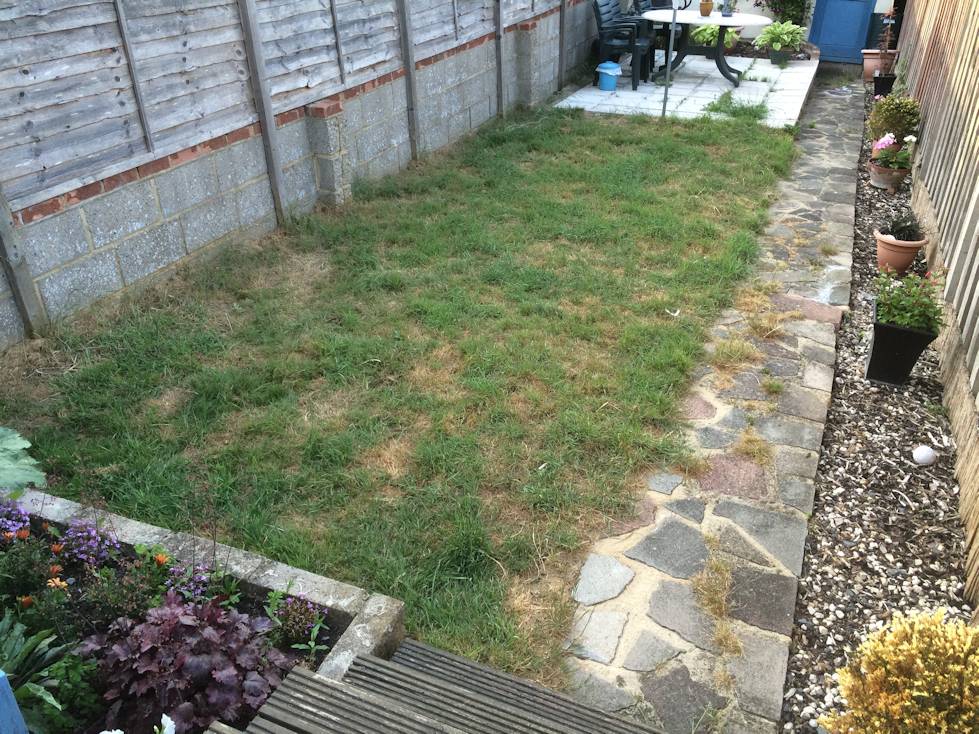 The back-garden lawn had become rather threadbare and patchy. The best and quickest solution was to remove the old lawn and re-turf (including a new timber retainer wall).
