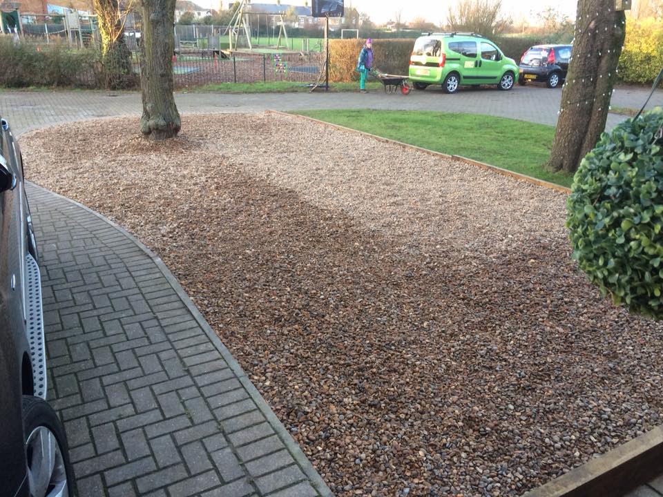 Here we removed an old lawn, edged the area, replaced it with a type 1 base and 20mm shingle to create extra parking spaces.
