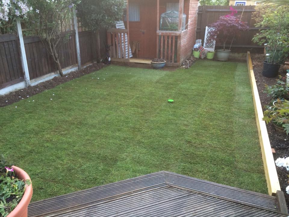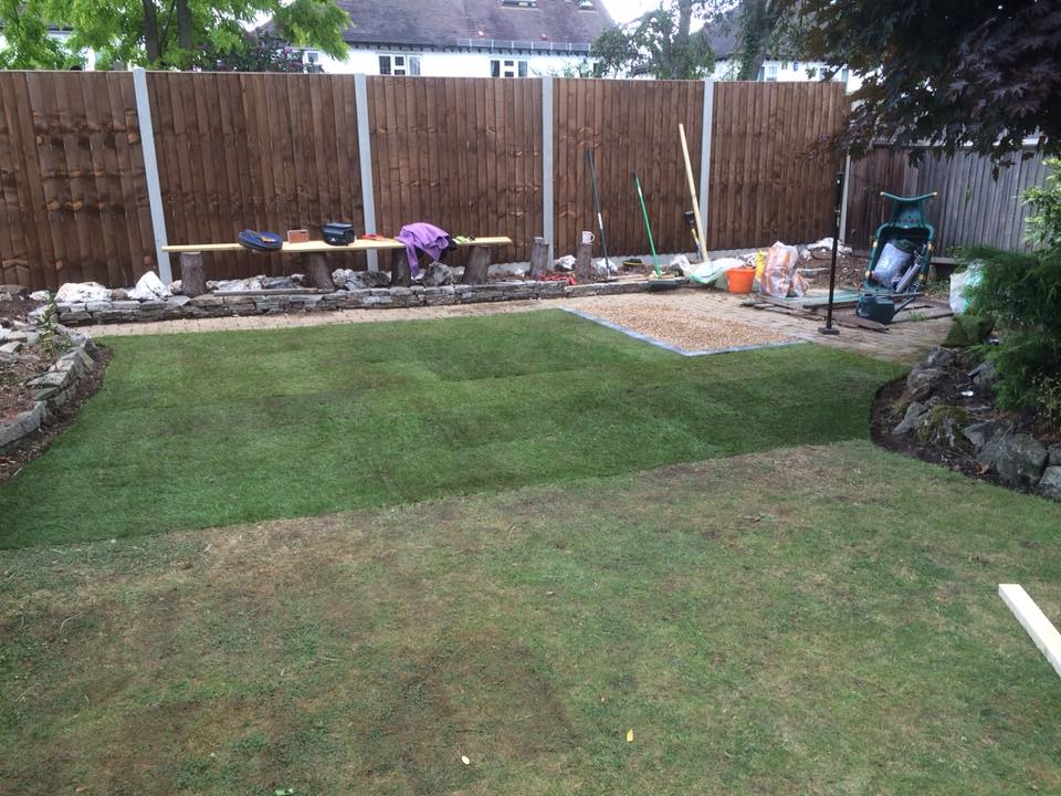 Re-turfing the back of the lawn which was prone to flooding. This was dealt with by adding drainage material to help prevent this