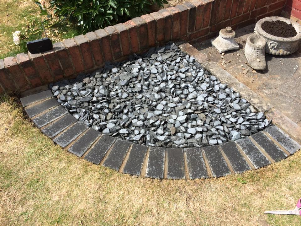 and lastly, a brick-edged area of hard landscaping was added to an existing bricked area to accomodate a new shed.