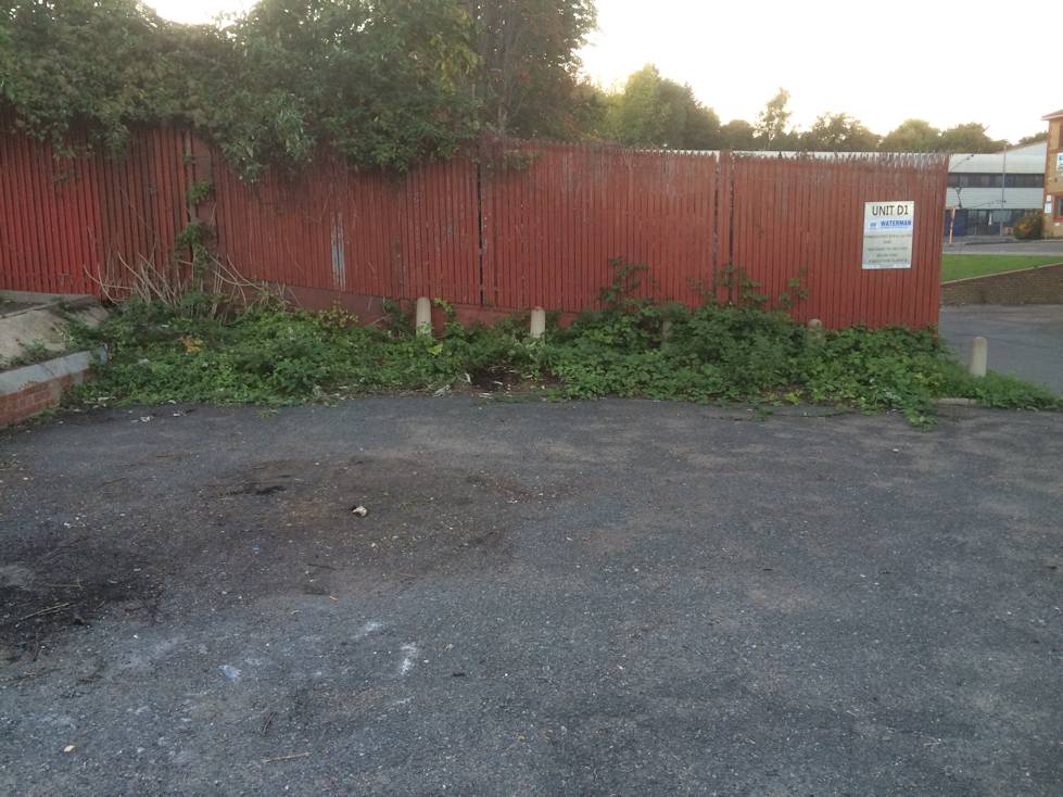 In a car-park, for an industrial estate, we were presented with what looked like a fly-tipping incident, which was now full of weeds and brambles. We dug away all of the excess earth and landscaped the area, thus reclaiming the car park.