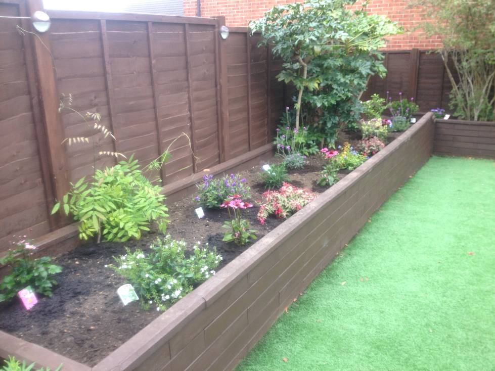 Four tonnes of soil and over thirty new perenials and shrubs went to filling up this planter which ran down one side and accross the back of the garden. This will look fantastic next season.